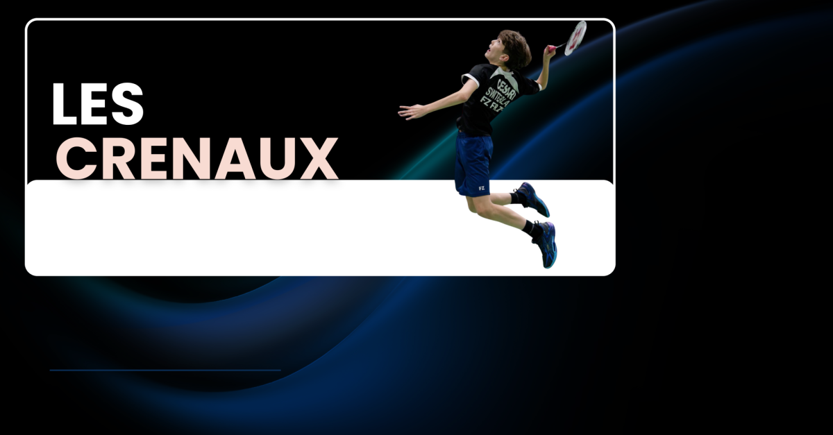 Mardi | 19h30 - 20h45 : Adulte Compétiteur 20h45 - 22h30 : Adulte loisir | 17h15 - 18h30 : MiniBAD | ||